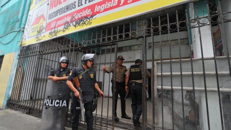 Efectivos de la Policía Nacional intervinieron a más de 40 sujetos que irrumpieron sin permiso en el local del Fondo Nacional de Vivienda – Fonavi, situado en la cuadra 8 del jirón Caylloma, en el centro de Lima.