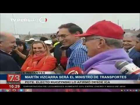 El presidente electo Pedro Pablo Kuczysnki dijo que su primer vicepresidente Martín Vizcarra será el próximo ministro de Transportes y Comunicaciones.