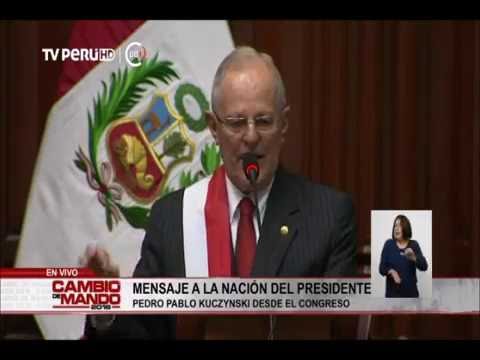 “Mi agradecimiento y compromiso es con el país entero. Tengo como meta lograr la paz y la unión de todos los peruanos”, dijo Pedro Pablo Kuczynski en su primer mensaje a la nación, en la sede del Congreso de la República, como nuevo presidente de la República.