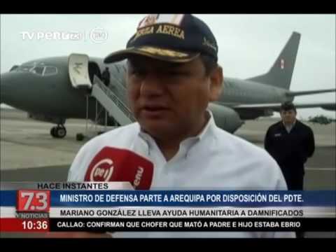 El ministro de Defensa, Mariano González, informó que que tres helicópteros serán enviados a la zona afectada por un sismo en el departamento de Arequipa.