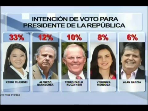 El candidato de Acción Popular, Alfredo Barnechea, pasó al segundo lugar de la preferencia electoral con 12% de respaldo, mientras que la postulante de Fuerza Popular, Keiko Fujimori, se mantiene en el primer lugar con 33 %, según la última encuesta urbano rural de la consultora Vox Populi.