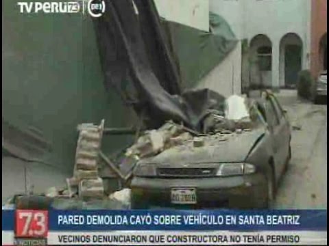 Totalmente inservible quedó un auto particular luego que le cayera encima la pared de una vivienda que estaba siendo demolida en la cuadra 8 de la calle Nicolás Araníbar, en Santa Beatriz.