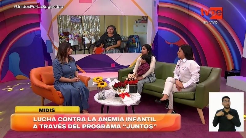 En el set también estuvo Xiomara Hinostroza, madre usuaria del programa, acompañada por su pequeño Matthew de dos años, quien superó la anemia con apoyo profesional y constancia familiar.