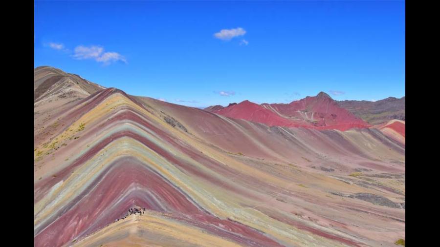 Vinicunca o Montaña de Siete Colores. A 131 km al sur este de Cusco, en la provincia de Quispicanchi, se encuentra esta montaña que debe su atractivo a una coloración natural, a consecuencia de la presencia de rocas sedimentarias en erosión. La caminata para llegar a Vinicunca puede tomar entre 3 y 4 horas. Es importante tener en cuenta que la caminata comienza a 3300 msnm y termine a 5100 msnm.