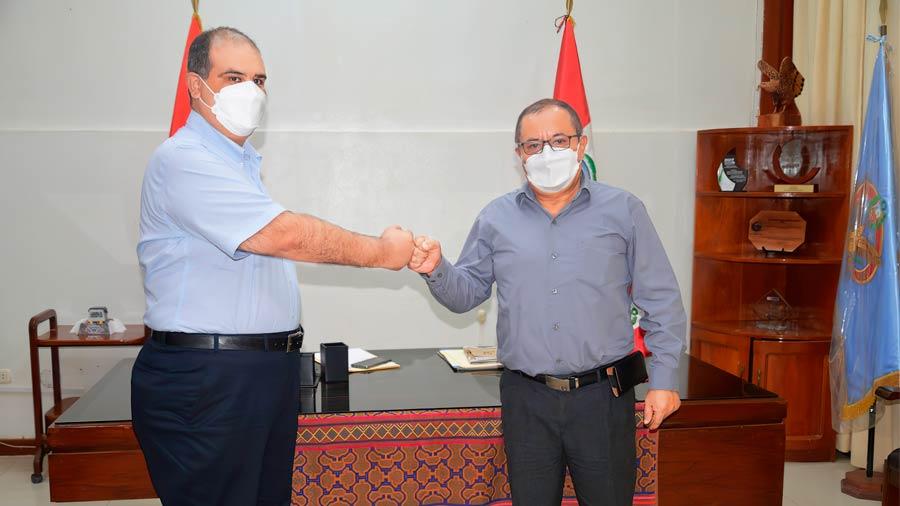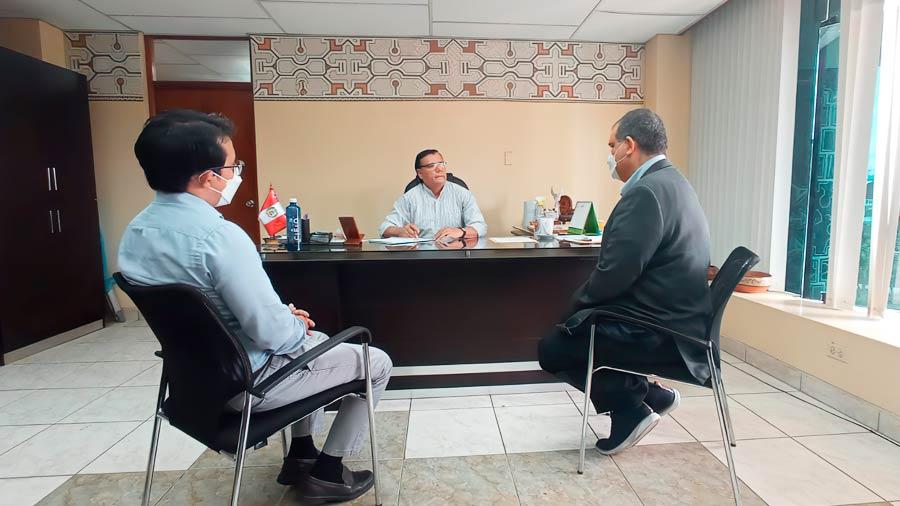 Durante su estadía en la conocida "Tierra Colorada", el titular del IRTP se reunió con el alcalde encargado del Municipio Provincial de Coronel Portillo, Rául Marden Contreras, y el gobernador de la Región Ucayali, Dr. Ángel Luis Gutiérrez.